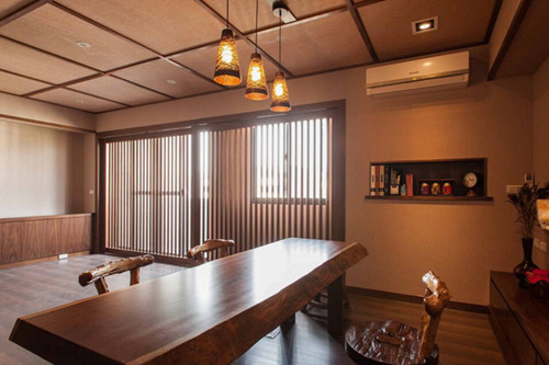 原木色的日式推拉格柵,講究的是整個空間的流動與分隔,流動則分為獨立的壹室,分隔則分為好幾個功能空間;也非常註重實際的使用功能。然而,傳統的日式格柵風格是壹般不推崇金碧輝煌、高端奢侈的效果,主要以淡雅簡約、深邃禪意為境界,體驗到了還原於大自然的感覺。