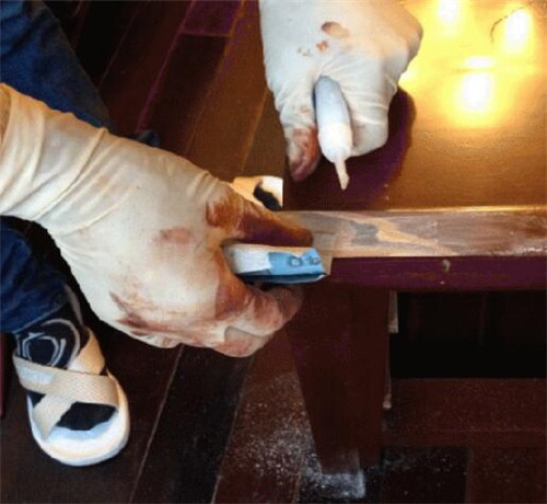 1、對於掉漆的部位,我們可以準備壹些修補工具對其進行修補,例如:502膠水、修補筆等等,然後我們需再用小刀把掉漆的地方進行鏟平。這樣的順序我們需要重復幾次進行,壹直到磕碰的地方與周圍出現平整為止。在這個過程中,我們需等待膠水點補完全幹之後再用小刀將其鏟平,檢查確定它與周圍平整之後才可以更換400#砂紙進行打磨。