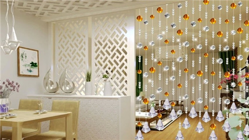 4、隔斷墻的設計除了可以設計成鏤空和玻璃的之外,還可以將它用布藝窗簾來裝飾。布藝窗簾除了有裝飾效果,使用起來也比其他材料設計更加方便,而且價格便宜。隔斷墻也可以用珠簾做隔斷,珠簾可以與各種家居風格融合,搭配起來更加時尚。